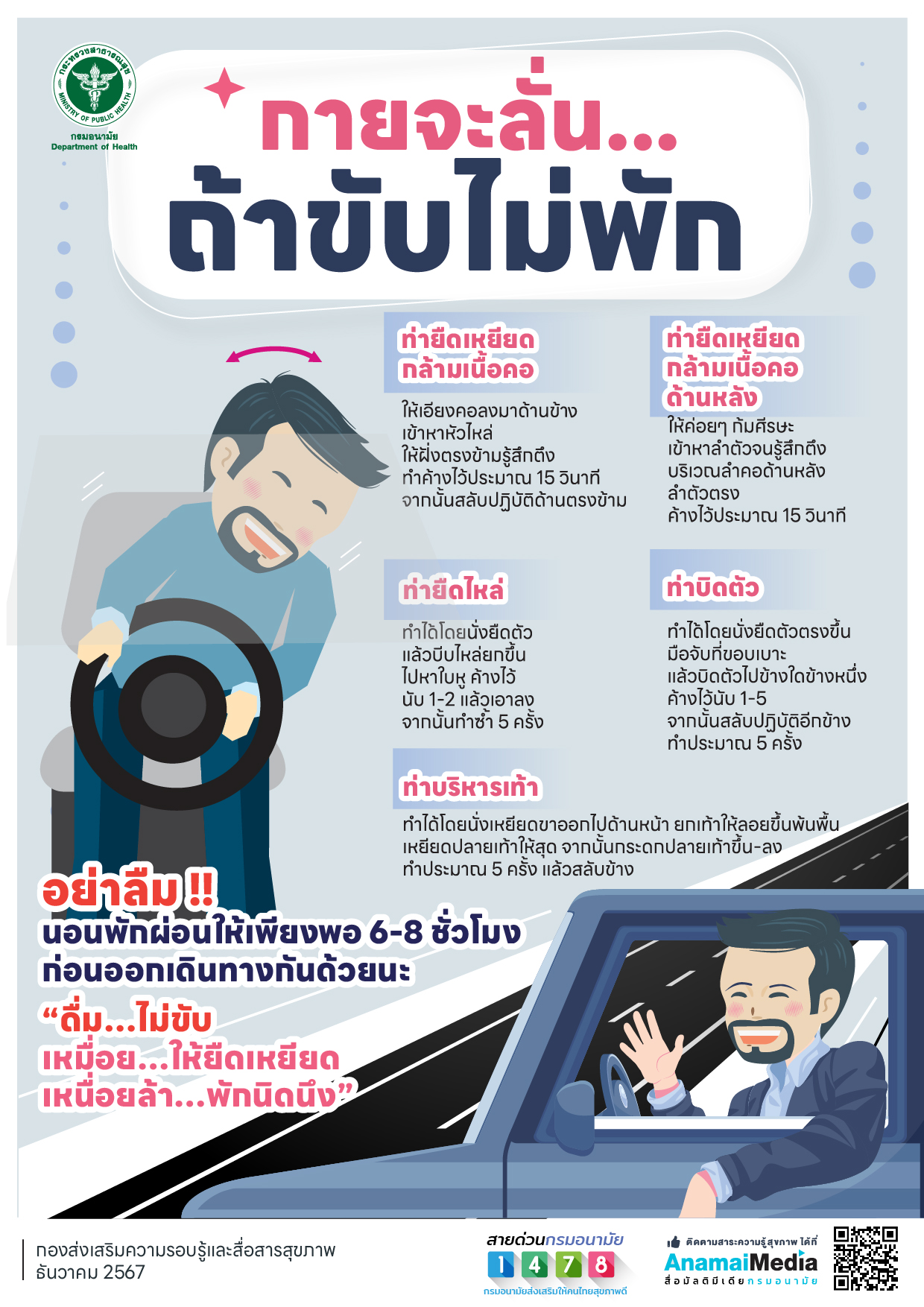 🎀 สุดท้ายนี้ ขอให้ประชาชนทุกท่านมีความสุขในช่วงเทศกาลส่งท้ายปี มีสุขภาพร่างกายที่แข็งแรง มีจิตใจที่ร่าเริงสดใสเสมอ และอย่าลืมนะคะ “ดื่ม…ไม่ขับ เหมื่อย…ให้ยืดเหยียด เหนื่อยล้า…พักนิดนึง” ❤️🎄✨