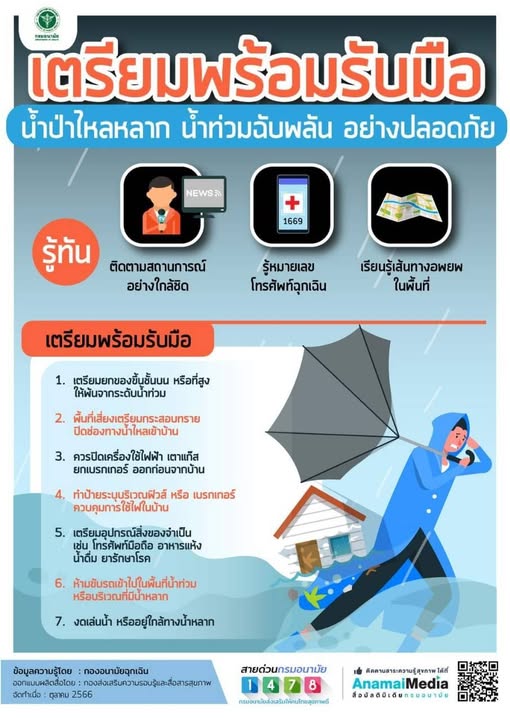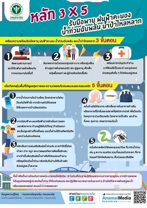 หลัก 3 x 5 รับมือพายุ ฝนฟ้าคะนอง น้ำท่วมฉบัพลัน น้ำป่าไหลหลาก