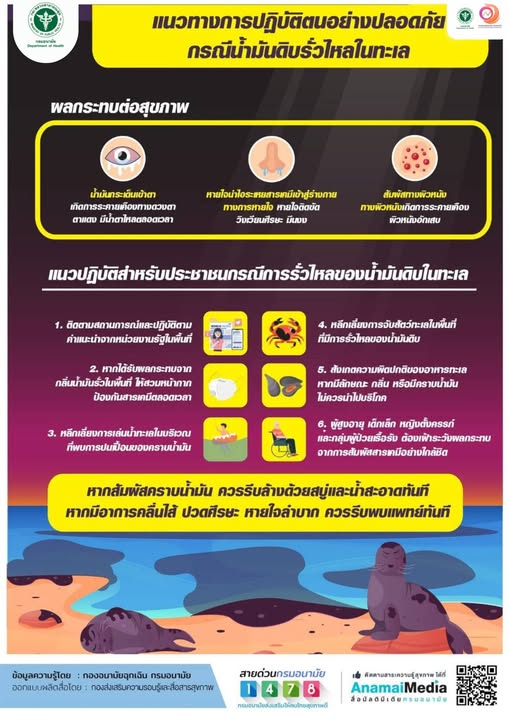 แนวทางปฤิบัติตนอย่างปลอดภัย ในกรณีน้ำมันดิบรั่วไหลในทะเล